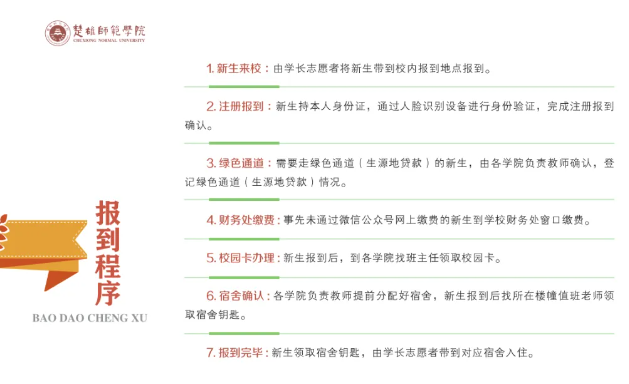 3.需带证件:请您携带“录取通知书”“身份证”“高考准考证”“公民兵役登记”相关证明(限男性)按时到学校办理入学报到手续。此外,专升本新生报到时须交验专科毕业证书原件,第二学士学位新生报到时须交验本科业证书、学士学位证书原件。