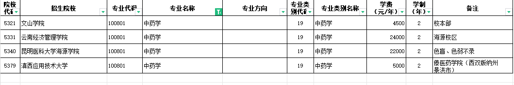 2024年云南中药学专升本招生院校为文山学院、云南经济管理学院、昆明医科大学海源学院、滇西应用技术大学。
