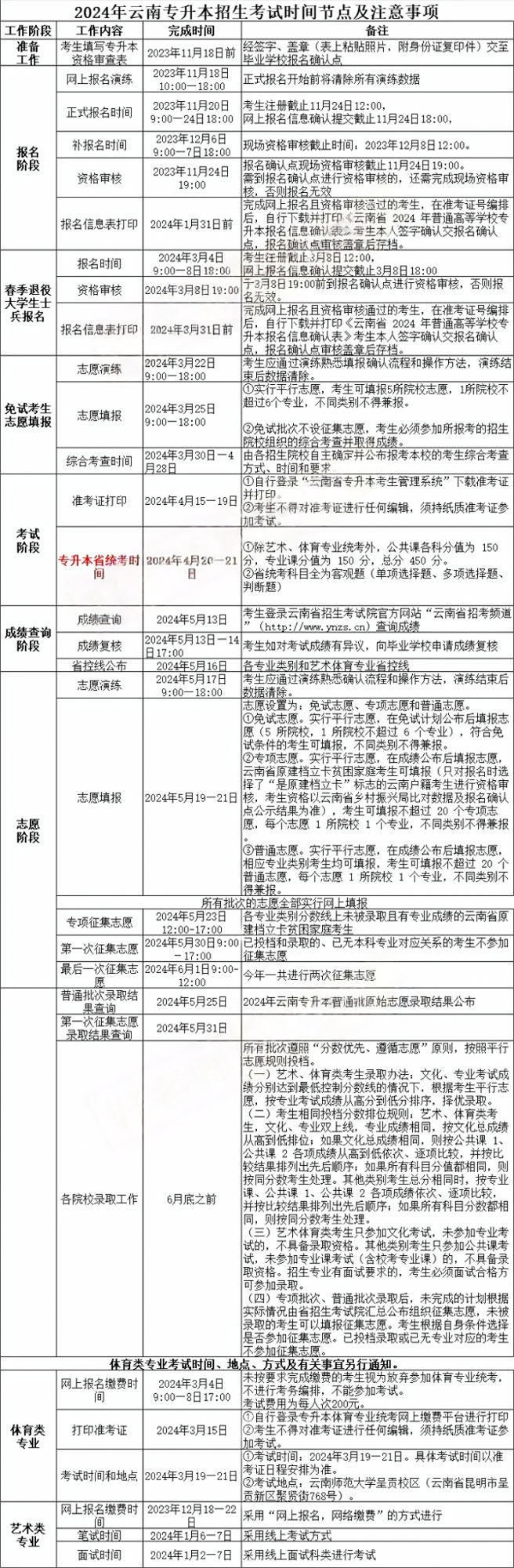 云南专升本报名一般在前一年的11月左右,具体的时间不定,同学们需要多加关注。考试一般会安排在每年的4月份左右,一般也会和其他证书考试或者大型考试错开。云南专升本考试具体流程以及时间线参考如下。